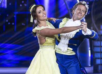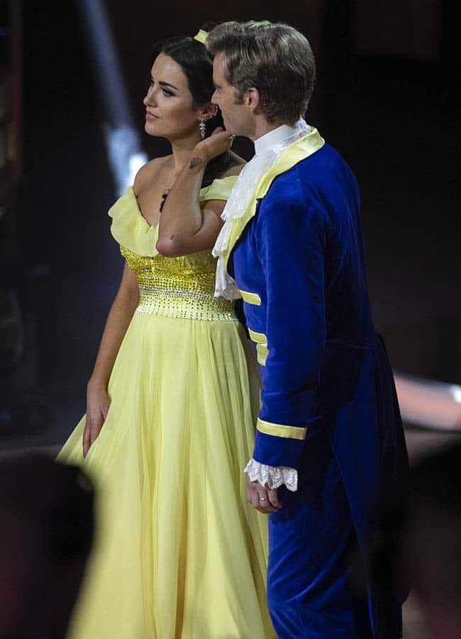 Holly Carpenter with Trent Whiddon during the Fourth live show of Dancing With The Stars . Dancing a Foxtrot to ‘Beauty And The Beast’ from Beauty And The Beast Pic: kobpix