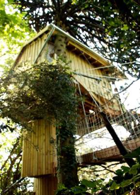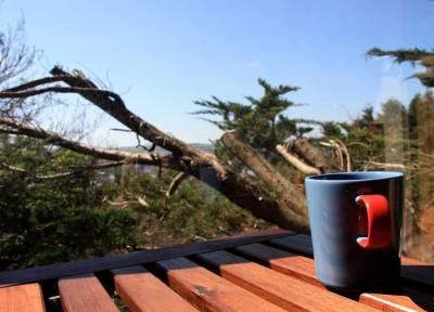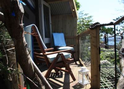 The tree house is fully insulated and supported by real trees 6m off the ground and the south-facing view means you get lots of sun.