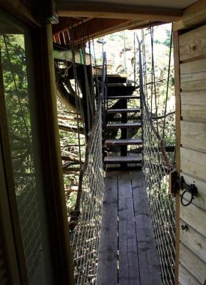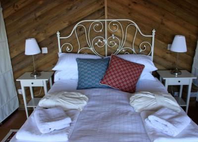 The tree house consists of a bedroom on the top level with double doors on to a deck and a bathroom on the lower level. Plus, it has heating so don't worry about getting cold in winter.