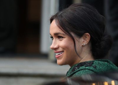 Meghan styled the coat dress with a classic black clutch and high heels while pulling her hair back into her trademark messy bun.