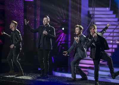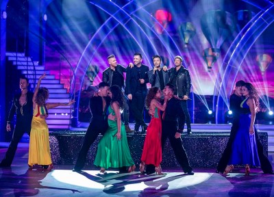 Westlife performing with the Pro Dancers during the Final of Dancing With The Stars Pic: kobpix