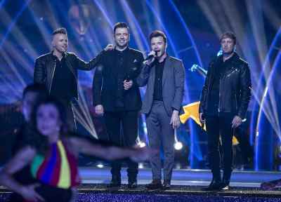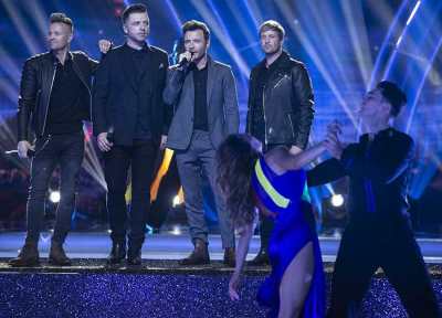 Westlife performing with the Pro Dancers during the Final of Dancing With The Stars .