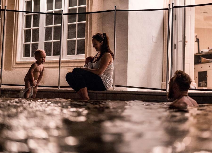 Big brother Conor Jr can be seen gently holding on to Croia's arm while they're both lying on the floor under a mobile.