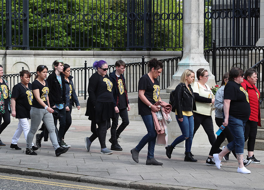 Her heartbroken mother Joan, brothers Gary and David and sisters Joan Hunter, Nichola Corner and Mary Crossan, accompanied by Lyra’s partner Sara made their way into the church supported by other family members.