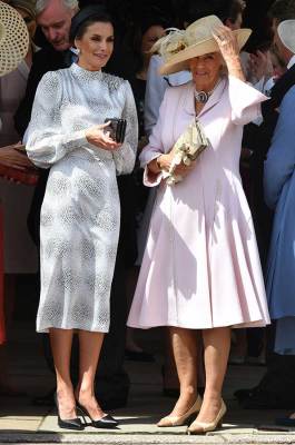 The Royals flew in from the continent to be with their husbands King Felipe VI and King Willem-Alexander who will be formally given the Orders insignia by Queen Eliabeth II in the castle's Throne Room.