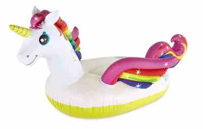 2 air chambers and handles provide safety and comfort. Includes Repair Patch. Choose from Flamingo (approx. 142 x 137 x 97cm) or Unicorn (approx. 201 x 140 x 97cm). Max. load approx. 40kg.