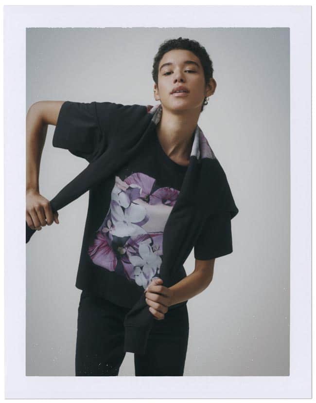 And her beautiful photographs of flowers for this collaboration look amazing on the 90s streetwear-inspired designs – it’s laidback with an edge.'