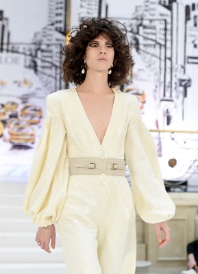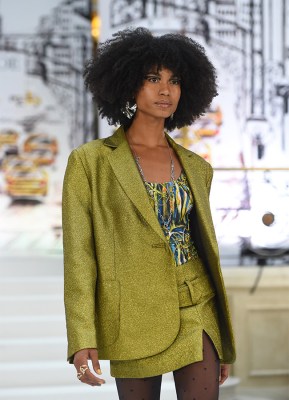 The clue was in the song choices, the best of the eighties took to the catwalk, with puff-sleeved dresses, leotards in graphic prints layered underneath tweed cocoon coats and printed leggings under particularly everything.