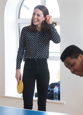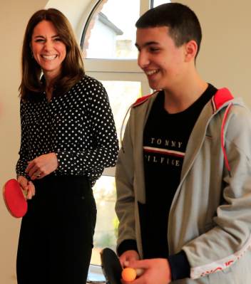 The Duchess of Cambridge enjoys table tennis in the centre during a visit to Extern at Savannah House, in County Meath. Pic: PA Wire