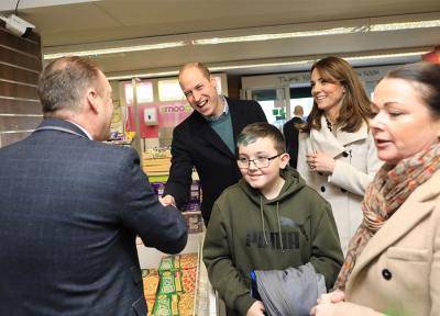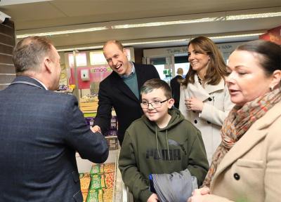 Prince William and Catherine Duchess of Cambridge shopping at Londis with youths from Extern's Savannah Hous