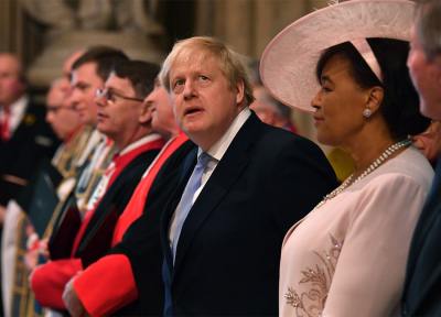 Boris Johnson and fiancee Carrie Symonds. Pic: REX