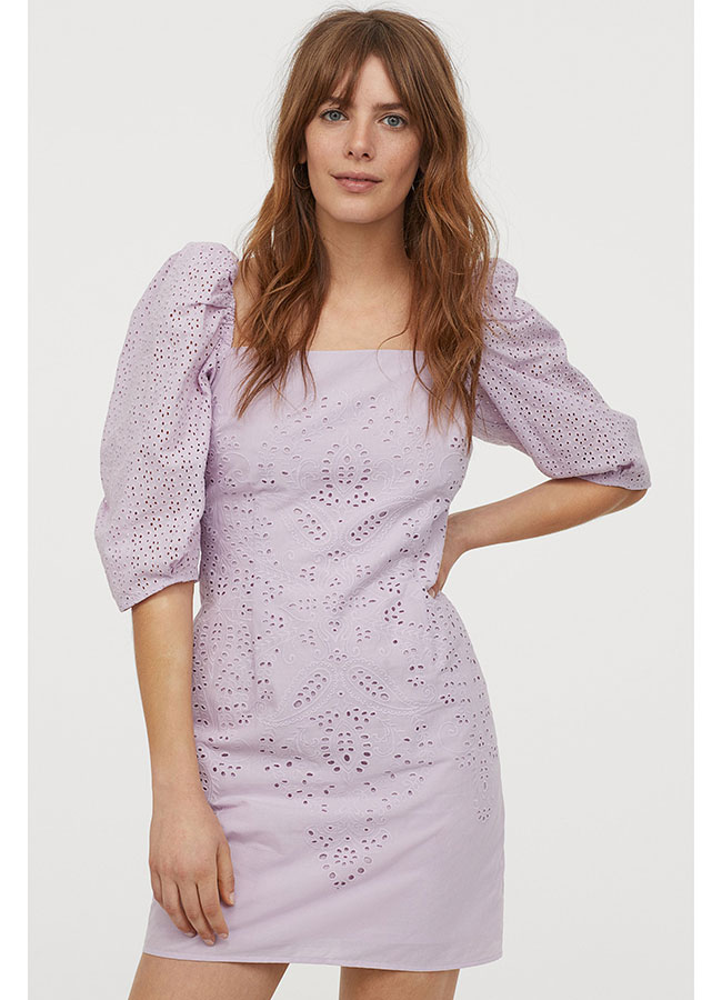 Another one of our favourite styles from this mini collection is a dreamy pastel lilac mini dress. Hopping on one of this seasons most popular micro-trends; Broderie Anglaise, which has been seen all over the runways of Erdem, Kate Spade and Zimmerman for SS20, with Ganni and H&M fuelling the sartorial fire.