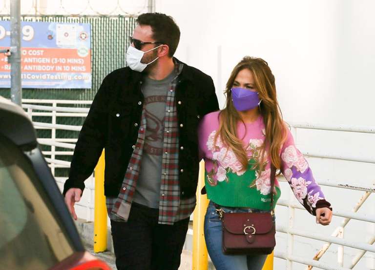 Ben also opted for a casual look for the day out as he wore a black jean jacket over a plaid shirt and graphic tee. The Last Duel actor paired his downtime look with black jeans, sunglasses, white runners, and a white face mask.