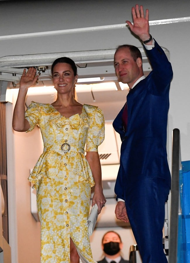 Kate slipped into a yellow dress before they walked the red carpet to the aeroplane to head home to their three children just in time for Mother's Day.