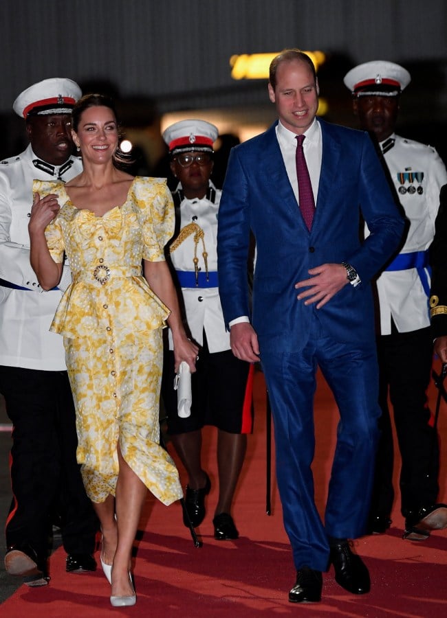 Wearing a sold-out €324 Rixo dress while visiting a chain of islands that was badly hit by Hurricane Dorian in 2019, Kate decided to tuck into local delicacies.