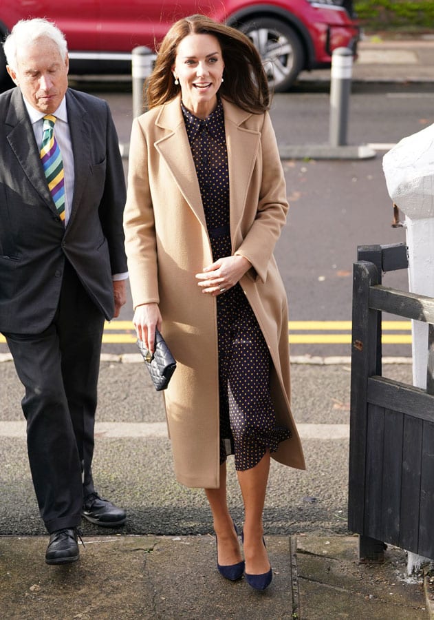 The royal opted for a €459 camel Max&Co coat over her polka dot dress. A firm favourite of Kate's as she wore it recently on a visit to Scarborough with Prince William.