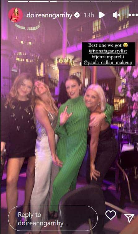 As they said themselves, the ladies were looking 'so gorgeous' on the night. Doireann opted for a little black mini-dress for the festive night out.