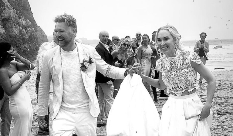 The couple said their vows in an intimate ceremony on the sand on Lusty Glaze Beach in Newquay on Saturday, surrounded by close family and friends, and continued the celebrations in the venue's restaurant overlooking the sea.