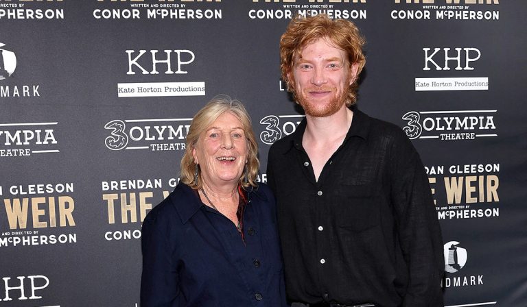 Domhnall Gleeson with his mother Mary Weldon pictured at the opening night of The Weir in Dublin. Pic: Brian McEvoy