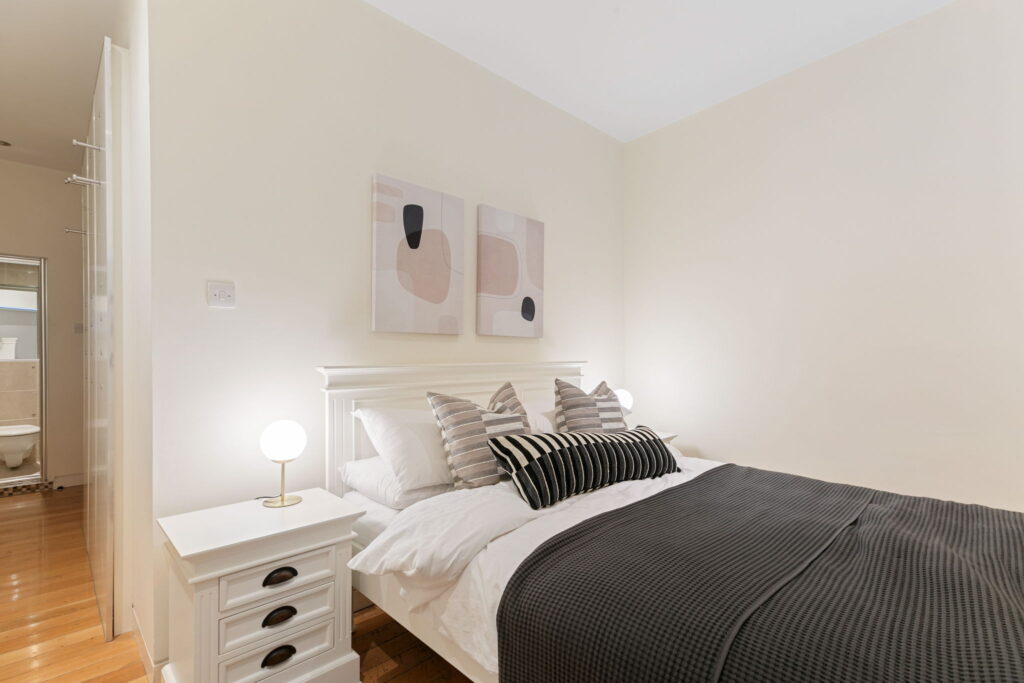 Both bedrooms are to the rear and are en-suites, and the bathrooms have heated stone floors