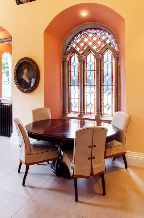 There are Insta-perfect arches, cool columns, Gothic-inspired leaded glass windows, and decorative gold leaf throughout.