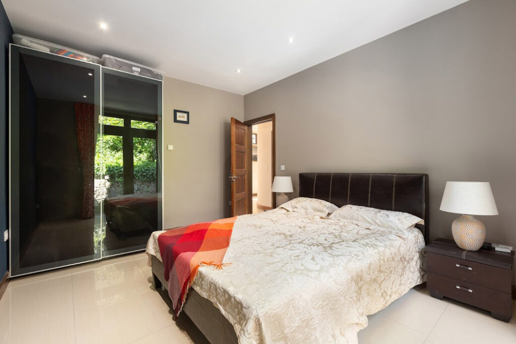 The downstairs bedrooms, as shown below, overlook verdant greenery.