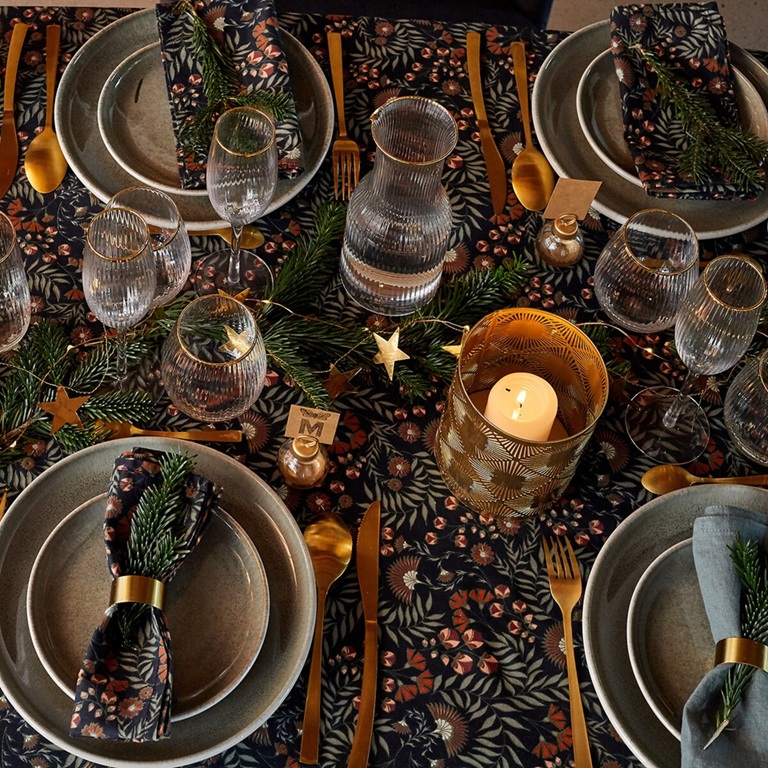 If you’ve been invited to dinner on December 25th, offer to set the table and bring this lovely William Morris-inspired washed cotton Majari tablecloth to lay the groundwork.