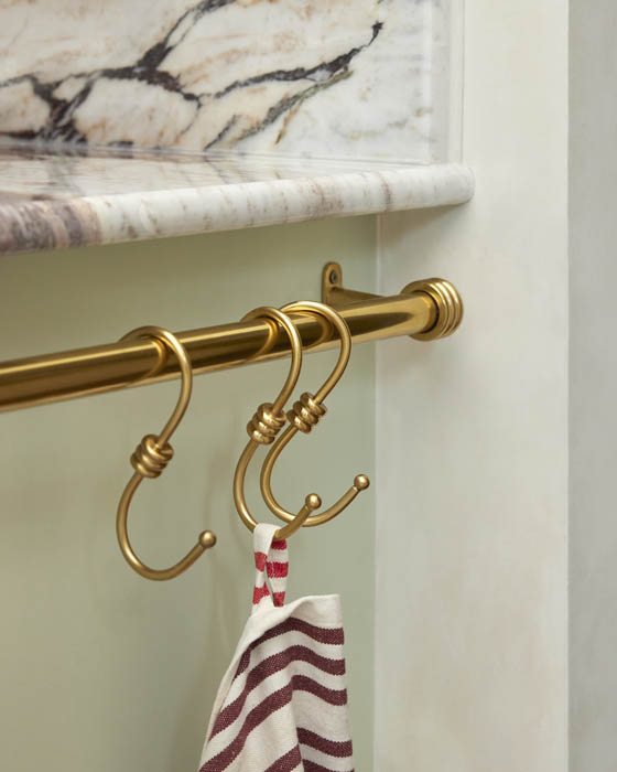 There are cleats and S-hooks, café curtain pole brackets, that lend privacy but allow light to also come through, and The Essentials, a series of lighting fixtures and cupboards, and press door pulls in glamorous 1970s-inspired Lucite, in bamboo form and with decorative metal plates in finishes you hadn’t even realised you desired.
